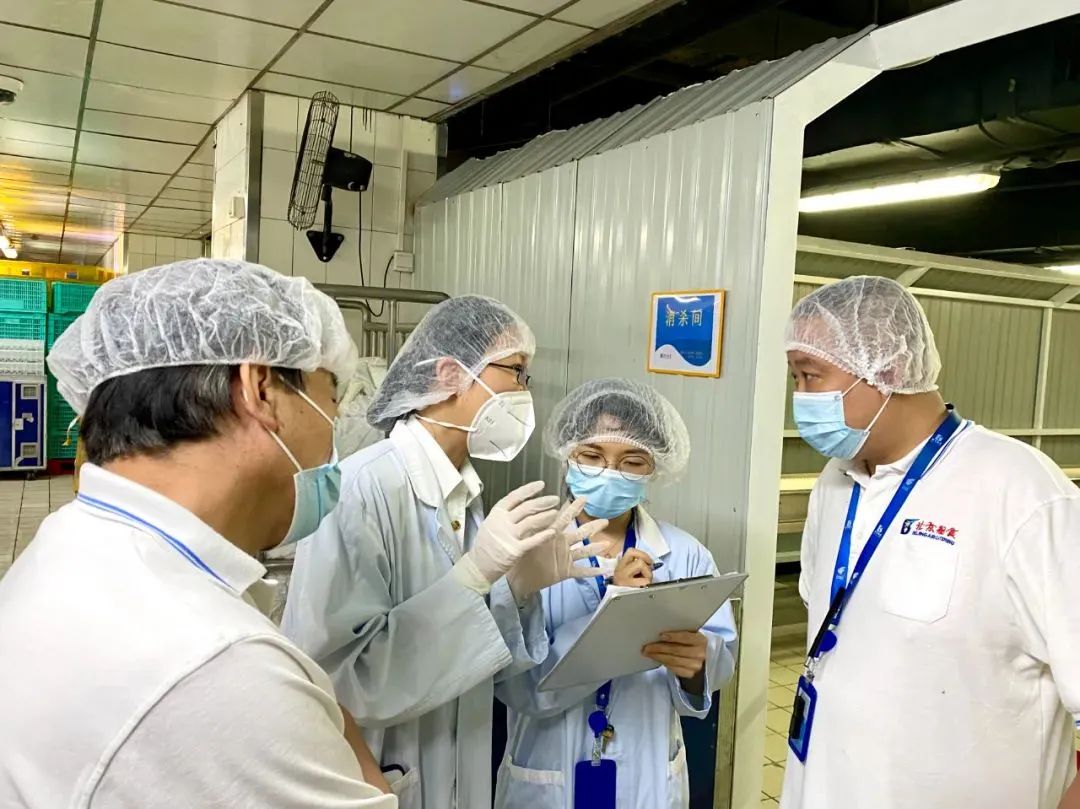首都機(jī)場(chǎng)海關(guān)關(guān)員對(duì)航空食品生產(chǎn)企業(yè)進(jìn)行現(xiàn)場(chǎng)監(jiān)督指導(dǎo)。