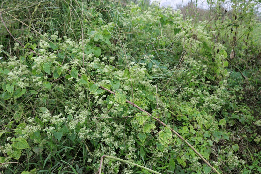 薇甘菊是多年生藤本植物,在其適宜生長(zhǎng)地區(qū)攀援纏繞于橋灌木植物,重壓于其冠層頂部,阻礙附注植物的光合作用繼而導(dǎo)致附主死亡,是世界上最具危險(xiǎn)性的有害植物之一。