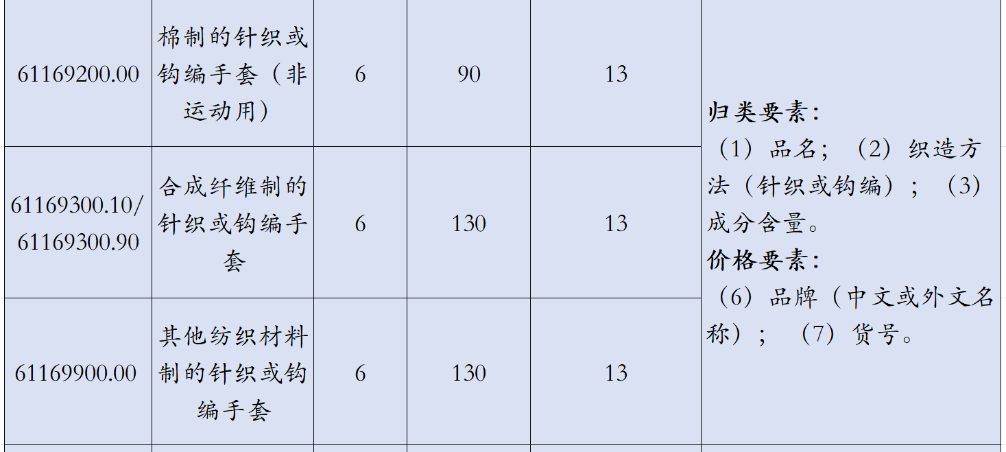 手套可以在勞動(dòng)過(guò)程中對(duì)手部進(jìn)行保護(hù),應(yīng)用非常廣泛,根據(jù)不同工作場(chǎng)景有不同保護(hù)和幫助工作的手套,比如防滑耐磨手套、絕緣手套、焊接手套、耐油耐腐蝕手套、無(wú)塵手套和消防手套等,其制作材料主要有皮革、棉線、PVC、橡膠等,可能涉及的歸類及規(guī)范申報(bào)要素如下:
