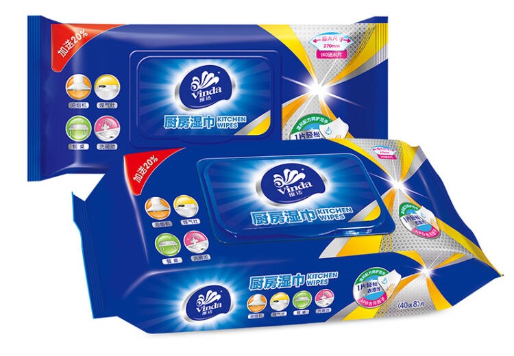 (六)廚房濕巾。主要用于清潔廚房,一般都是加厚無紡布制作,含有活性去油污成分,實(shí)現(xiàn)強(qiáng)有力的清潔效用,可快速去油去污,一般是以純凈水、烷基糖苷、檸檬酸鈉、清新檸檬精華等為成分,能夠滿足廚房清潔油污的基本需求。