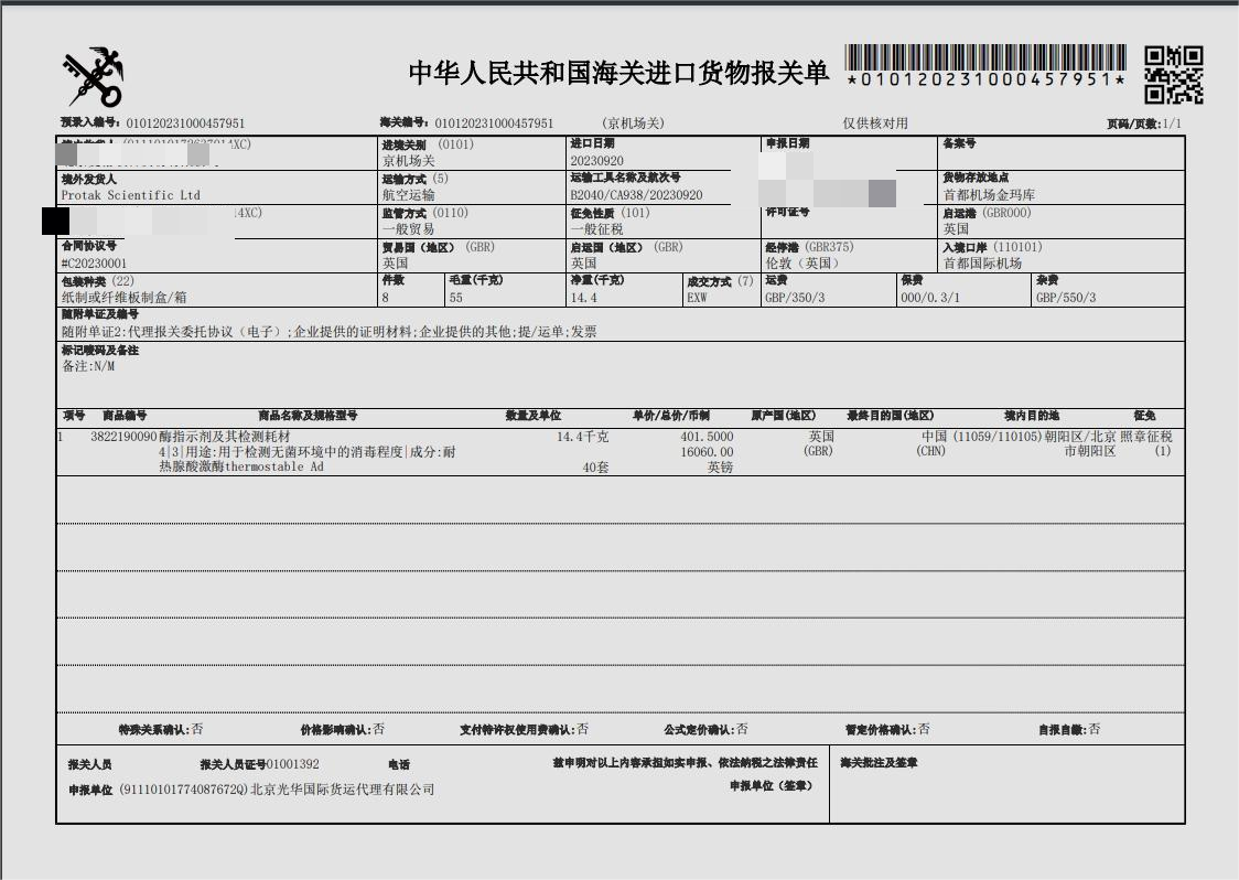 4.分揀生物試劑并貼標,安排進口申報,稅金支付等,完成進口清關(guān)后將貨物配送至各大醫(yī)院或者研究所等。