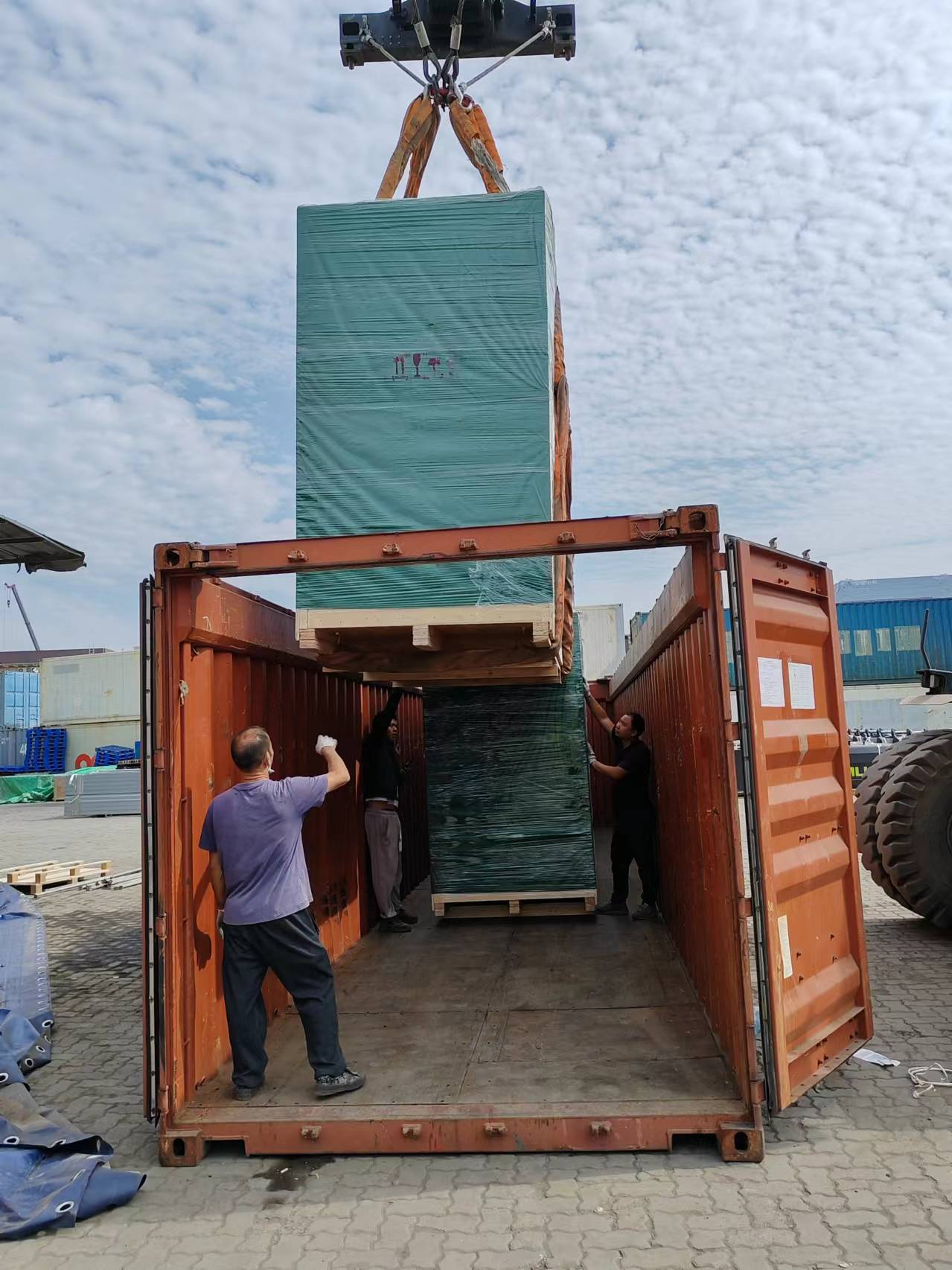 另外開頂柜由于貨物都是超尺寸,裝箱難度大,這次最高的貨物是2.8米高。我司也提前安排了專業(yè)的裝箱團(tuán)隊(duì)人員到廠盯裝。